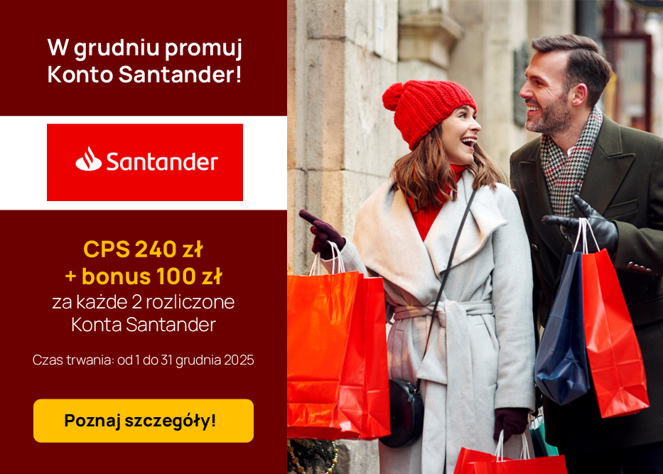 - Aby otrzymać nagrodę, uczestnik konkursu musi dotrzeć do jak największej liczby odbiorców, którzy z jego polecenia zdecydują się na założenie wskazanego konta w Santander Bank Polska, spełniając warunki Regulaminu.